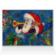 R Alphabet Brief Xmas monogramm Design. .Farbenfrohe, skurrile und künstlerische Acrylmalerei für Weihnachten. Weihnachtsmann, schneebedeckte Winternacht mit Blumenziern, Roter Bogen, grüne dekorative Pflanze, rote Bänder, Heilige Beeren, Puppen und Spielzeug im Schnee von Bulgan Lumini (c) com