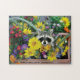 Genießen Sie dieses Raccoon Puzzle "Eine von einer Art"! Es verfügt über einen Mischpult in einer Holzbox, die aus schönen Blume herausholt! Original Design von Künstler Kerry Miller!