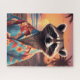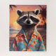 Funny Raccoon mit einem hawaiianischen Shirt an einem schönen Strand.