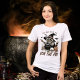 Un raton laveur "sinistre" sourit en brandissant un chaudron de sorcière accompagné du drôle de dicton "On My Way to Stir the Pot." Ce design noir, blanc et orange donne une touche d'obscurité malgré le texte amusant. Allez un peu "feral" cette saison d'Halloween et restez sur la tendance avec ce design amusant.