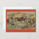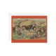 Rinder im Zentrum, umgeben von Nutztieren, und Jockeys Rennpferde auf einer Rennbahn oben, in diesem schönen Bauernhof und Sport-Ephemonie. Orangefarbener Rand.