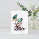 Ein cooles Design eines Renners auf einem Dreirad. Dieses Design sieht, wie der Bloke auf dem Dreirad seine Zähne zerknallt, während er vom Rennen weg ist. Das Dreirad ist rot und der Bloke trägt ein grünes Shirt und einen Helm. Dieser Renner zum Tricycle-Design sieht auf diesen Einladungen großartig aus
