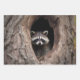 Niedlicher junger Raccoon, der aus dem Innern des großen Baumes aussieht.