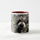Wilder Racoon mit seiner Nase fing im Zaun. Schaut, wie er herausfindet kippt, wie man hinausgeht.