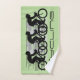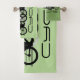 Raddesign Badetuch Set mit anpassbarer Hintergrundfarbe und Text auf allen drei Teilen.