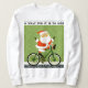 Radurlaub-Sweatshirt mit lustigem Santa-Radfahrer, der ein Fahrrad durch den Schnee fährt.