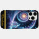 Ein Einzelradfahrer fährt ein leuchtendes Fahrrad zu einem schwindelerregenden, lebendigen Wirbelsturm voller Sterne und strahlender Farben.