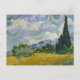 Dieses Feld mit Cypressen-Druck ist eines von drei ähnlichen Gemälden von Vincent van Gogh aus dem Jahr 1889. Alle drei wurden im Heiligen-Rémy-Geistesheim gemalt, wo er damals ein Patient war. In einem Brief an seinen Bruder Theo beschrieb Vincent das Bild: "Ich habe eine Leinwand von Zypressen mit Weizenohren, einigen Mohn, einem blauen Himmel, wie ein Stück Schotter kariert; Das erste mit einem dicken Impasto gemalt ... und das Weizenfeld in der Sonne, das die extreme Hitze darstellt, auch sehr dick."