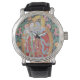 Uhr, Vintage Männeruhr mit schwarzem Lederarmband