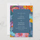 Die Save the Date Einladung zeigt ein Blumendesign in gouache, mit lebendigen, abstrakten Blüten in Rosa, Purpur, Blues und Gelb. Kühne Pinselstriche und malerische Texturen schaffen ein modernes, künstlerisches Ambiente.