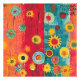 Erleben Sie die Freude und Lebensfreude des "Radiant Garden", eines farbenfrohen und skurrilen Kunstwerks, das das Wesen der Schönheit der Natur erobert. Dieses Stück besticht durch eine lebendige Komposition mit kühnen, kontrastreichen Farbtönen - Rot, Blues, Gelb und Grüntöne - die eine dynamische und fröhliche Atmosphäre schaffen. Das Hauptmotiv zeigt eine Reihe stilisierter Blume, darunter Sonnenblumen und abstrakte Blüten, die durch Saiten vor einem strukturierten Hintergrund aufgehängt werden. Die spielerische Anordnung und die komplizierten Details rufen ein Gefühl von Staunen und Kreativität hervor und machen dieses Kunstwerk zu einem perfekten Kunstwerk für diejenigen, die einen Energieausbruch und eine positive Einstellung in ihre Lebensräume bringen möchten.