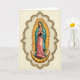 This design shows a serene woman centered inside an ornate, flowing frame, her head slightly bowed and her hands gently pressed together as if in quiet reflection. She wears a soft rose-pink gown with a deep teal cloak draped over her shoulders, the folds falling in a way that feels tender and intimate, like a calm moment shared with a close friend. Behind her, a golden halo of radiating rays surrounds her silhouette, casting a warm glow into the creamy background and drawing the eye inward. Along the upper curve of the frame, small lettering in muted gold sits neatly above her head, while a shorter line of text appears near the bottom in a matching tone. Beneath her feet rests a gilded crescent decorated with delicate floral motifs, suggesting a gentle, dreamy setting 🌷. Tucked into the inner curve of the crescent are a few tiny red berries, adding a quiet pop of color 🐇. The border details curl like vines around the scene, with gold accents tracing the frame and echoing the floral patterns on the crescent. The teal cloak edges are highlighted with fine gold lines that catch the light against the warm cream backdrop.