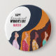 An elegant tribute to International Women's Day, this boutique button features a hand-painted illustration of women in profile. Their long, wavy hair flows in ethereal shades of blue and violet, perfectly complementing their colorful floral-patterned dresses. A sophisticated symbol of grace and solidarity for IWD 2026 and beyond.