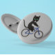 Radkatze auf einem Rad Schwarz-Weiß-Katze Button