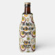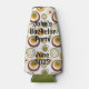 Ce glacière de bouteille a un design moderne du milieu du siècle de cercles concentriques en vert, orange et marron sur un arrière - plan blanc.