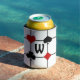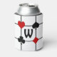 Maintenant, vous pouvez dire à votre carte jouant aux invités d'avoir un froid glacé - gelure libre! Ce Can Cooler personnalisé présente un design original d'inspiration Art Déco avec un thème de jeu de carte composé de symboles de couleur rouge et noir brillant (diamant, trèfle, coeur & pique) centré où les lignes horizontales et verticales épaisses et fines noires d'une grille se rencontrent, avec un grand champ de texte personnalisé pour votre monogramme au centre.
