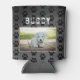 Chien Paw Motif Chalkboard Chien Photo Can Cooler. Empreintes de pattes noirs sur un tableau noir gris foncé. Ajoutez votre photo au modèle et personnalisez-la avec le nom de votre chien. Idéal pour une mère de chien ou un père de chien.