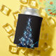 Christmas Party Blue Tree Shiny Black Elegant Can Cooler. Unique, beautiful, stylish design. Easy to be personalized. Font style, size and colors can be changed. Matching items are available.