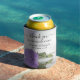 Ces magnifiques refroidisseurs de canettes sont une façon amusante et réfléchie de remercier vos invités mariages. Elles présentent une belle décoration avec des lettres de script élégantes et une seule lavande à long tige ou un rose de couleur violet clair allongé sur son côté réfléchissant dans un bassin d'eau. La légende dit : Merci de célébrer avec nous ! Il y a de la place pour les noms du couple et la date du mariage ci-dessous.