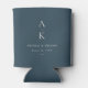 Élégant Simple Moderne Marine Bleu Monogramme Mariage Can Cooler présente des accords de type moderne dans des tons doux et modernes.