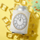 Ces refroidisseurs de canettes festives sont la façon idéale de servir des boissons à votre fête du Nouvel An. Une bordure en confetti d'or sur un arrière - plan blanc avec une horloge à chiffres romains avec un texte qui dit "Embrasse-moi à minuit."