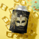 La fête mascarade en or noir faveur peut refroidisseurs avec masque d'or sur un choisir votre propre couleur arrière - plan et texte.