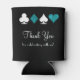 **Besoin d'une couleur différente du noir ? Il suffit de cliquer sur l'option personnaliser et de changer la couleur arrière - plan et même la couleur texte pour un look totalement personnalisé!*** La faveur parfaite pour vos invités, ces refroidisseurs de boîtes noires présentent un motif Las Vegas classique de faux costumes de carte de parties scintillant turquoise et deux côtés avec beaucoup de texte personnalisable. Personnalisez un côté avec un message de remerciement pour vos invités qui ont contribué à rendre votre journée spéciale et de customiser l'autre côté avec les noms de la mariée et du marié et la date du mariage.