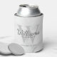 Ajoutez une touche personnelle à votre mariage avec des groomsmen personnalisés peut refroidir. Ce peut refroidir caractéristiques personnalisées groomsman's nom dans le style de police de script classique gris avec des détails mariages dans le style de police de serif classique gris et monogramme dans le style de police de serif classique gris clair comme arrière - plan, sur l'arrière - plan de marbre blanc. Parfait aussi pour le meilleur homme, père de la mariée, porteur de bague et plus.