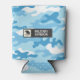 Show your support for the military with this stylish blue camouflage can cooler. Featuring a bold personalized text and a custom logo, this cooler is perfect for keeping your drinks cold at tailgates, parties, or any outdoor event. The unique blue and white camo pattern with subtle white dots adds a touch of modern flair to a classic military design. It's a functional and fashionable accessory for any patriotic individual or military enthusiast.