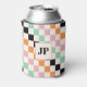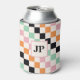 Monogram Retro Checkerboard Custom Monogrammed Can Coolers dispose d'un motif de damier coloré en vert, rose, orange, noir et blanc avec votre monogramme personnalisé. Personnalisez en modifiant le texte dans la zone de texte fournie. Un cadeau parfait pour les golfeurs pour l'anniversaire, Noël et plus. Conçu par ©2024 Evco Studio www.zazzle.com/store/evcostudio