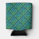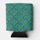 Un Céltic Can Cooler avec un noeud bleu-vert celtique répétée en diamant (pas de bordure) contre un arrière - plan noir.