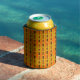 Cette boîte de refroidissement a un design moderne du milieu du siècle des rectangles et des cercles reliés par des tentures murales.