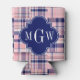 Rafraîchisseur Pour Canette Rose, Marine Blue Preppwork Patchwork Madras Monog