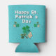 Shamrock moderne Clover Irish Happy St. Patrick's Day Can Cooler. Un joyeux texte de la Saint Patrick avec des shamrocks irlandais dessinant pour la chance sur un arrière - plan bleu vif. Vous pouvez modifier le texte.