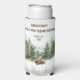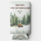 Seltzer Can Cooler avec pinède et feu de camp. Tout est placé sur un arrière - plan blanc et vert clair. Idéal pour votre prochaine réunion de famille, anniversaire ou tout événement sur le thème de la nature. Personnalisez facilement tout le texte ou laissez un peu de blanc - Kate Eden Art.