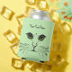Ce glacière en boîte ou en bouteille a le visage d'un chat dessiné en noir avec des yeux verts intenses et de longs murmures sur un arrière - plan vert clair. Customisez votre texte à l'avant et à l'arrière avec le modèle.