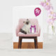 Niedliche Lumpenkatze mit einem Geschenk und rosa Party Ballon für 95. Geburtstag Nummer auf dem Ballon kann geändert werden.