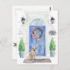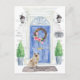 Mit unserer stilvollen Ankündigung kündigen Sie Ihre neue Adresse an: Ragdoll-Katze, blaue Haustür, Begrüßungstafel, Schiefer-Schild, Topiaries und ein blumengeschmücktes Set auf grauem Backstein.