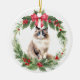 Ragdoll Cat Red Bow Holly Wreath Keramik Ornament