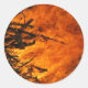 Ein Haufen silhouettierter Sticks auf der links Bildseite brennen heiß. Die dunkelorangen und gelben Flammen, die das Merizing bilden, füllen den größten Teil des Bilderrahmens. Der Wind drückt den Flammentorrent so, dass er schräg nach rechts abbiegst. Digitales, Farbfoto. Copyright © 2010 Claire E. Skinner. Alle Rechte vorbehalten.