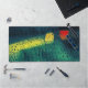 Das Original, abstrakte Kunstwerk von ZoeSPEAK auf dieser Desk Mat wurde aus Zoes Original-Nahaufnahme eines Bananenblattes erstellt. Die abgerundeten grünen Kurven der riesigen, gerippten Blätter bilden den Hintergrund für die Regentropfen und Farben Rot und Gelb.