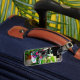 Gepäckumbau, der ein Foto des Spaßes u. der funky rainboots kennzeichnet.