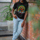 Das Material ist eigentlich gute Qualität, der Stoff ist nur etwas verzogen so dass der Drück leicht schief aussieht. Der Druck ist gute Qualität, habe das T-Shirt schon einige male gewaschen.