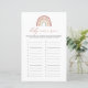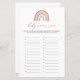Rainbow-Babyname-Rennspielkarte mit Babynahrung, Aquarellbogen-Illustration und elegantem handgeschriebenem Schriftart.