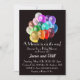 Ein Wunder kommt, ein neues Baby! Schwarzer zeitgenössischer Hintergrund mit einem lebhaften Ballon in Regenbogenfarben.