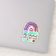 A vibrant sticker features the comforting text from Psalm 23:1 stating, The Lord is My Shepherd I Shall Not Want. The design is adorned with a colorful rainbow and decorative elements, perfect for uplifting environments and encouraging faith.