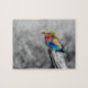 Schöner Regenbogen-farbener Vogel auf einem Stumpf. Der schwarz-weiße Hintergrund kontrastiert schön mit den farbigen Federn.