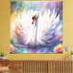 Ein wunderschöner Regenbogenschwan und Aquarellfarben-Blume.