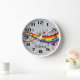 Black musical notes floating on a rainbow of swirling rainbow colors. The background is gray musical notes on a lighter shade. with easy to read numbers. Add your own personalized name to create a unique gift for the music lover. sgb01