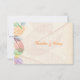 Auf der rechten Seite dieser Hochzeitskarte wird eine farbenfrohe Palette von Blätter angezeigt, die ihre delikate Rache zeigen. Der Hintergrund ist eine zarte, leicht bedrückte ecru-Farbe mit großen Blätter, die oben mit Wasserzeichen versehen sind. Die Rückseite zeigt den gleichen Hintergrund, um die Namen des Paares hervorzuheben. Ideal für jede Hochzeit mit Regenbogen! Verfügbar mit passenden Produkten.